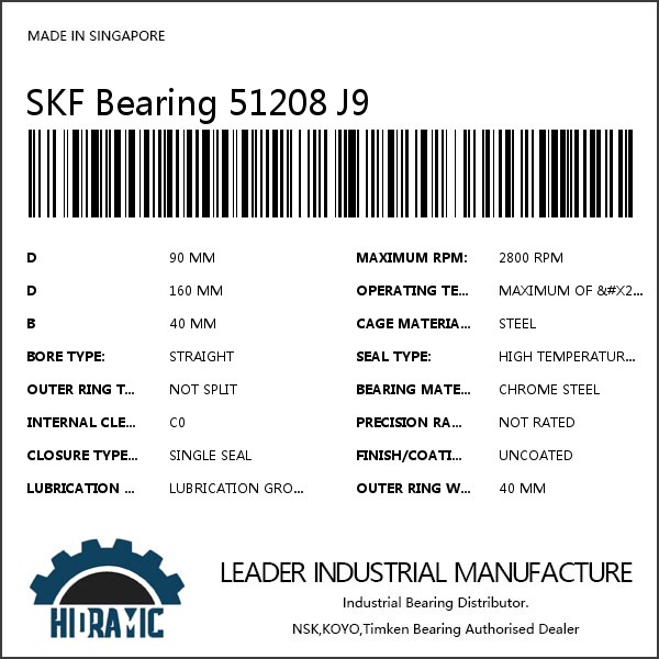 SKF Bearing 51208 J9 Product Features